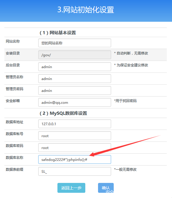如下代码,显然,我们不可能在用户名和密码处进行代码的注入,因为如果密码错误,程序就不会往下进行了,但是可以数据库名处插入payload。在程序执行的末尾,会将配置信息写入配置文件,由于安装文件并没有引入核心的过滤文件,因此不会过滤单引号等特殊字符。
