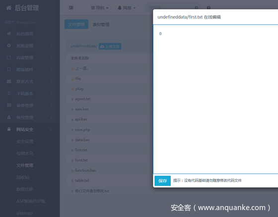 在后台处管理文件处,可以对除了PHP文件之外的任意文件进行修改,包括first.txt。