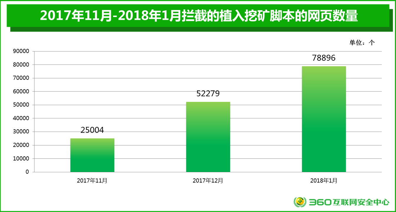 图10 2017年11月-2018年1月拦截的植入挖矿脚本的网页数量