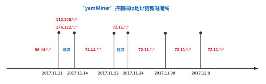 图22 “yamMiner”僵尸网络2017年11月-12月控制端ip地址更新概况