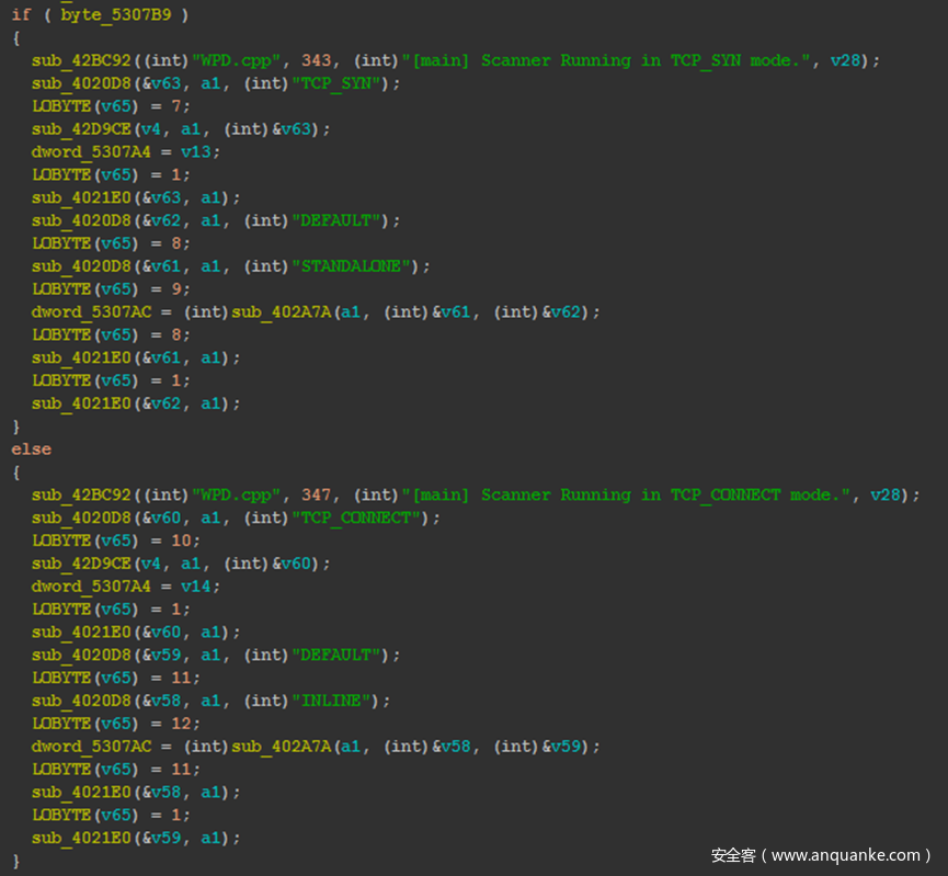 图15 “隐匿者”挖矿木马僵尸网络端口扫描模块代码片段[7]
