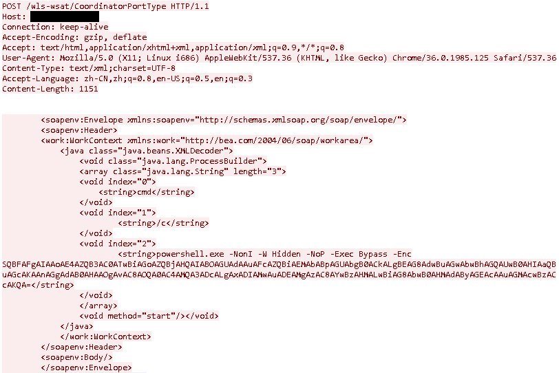 图14 “yamMiner”僵尸网络使用CVE-2017-10271攻击服务器时发送的数据包内容[6]