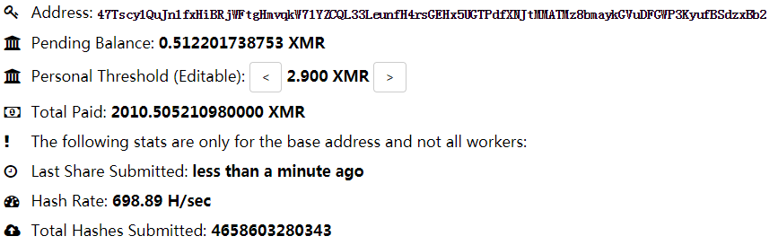 图5 “隐匿着”挖矿木马僵尸网络门罗币钱包概况