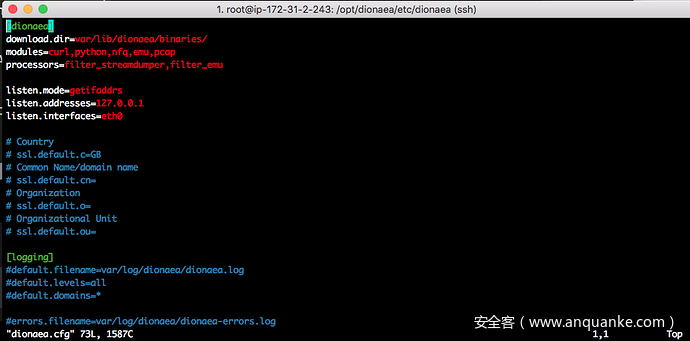 好的,现在来设置配置文件dionaea.cfg中的位置。