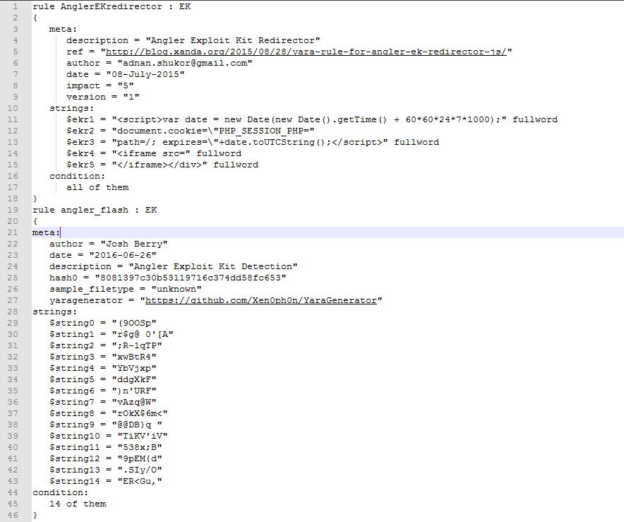 首先我们要分清楚yara源代码和yara编译之后的文件,很简单,如果你打开一个文件,看到的是如下所示类似格式的代码,那么它就是yara源代码,在使用yara源代码扫描文件时需要先转换为字节码文件,再执行。