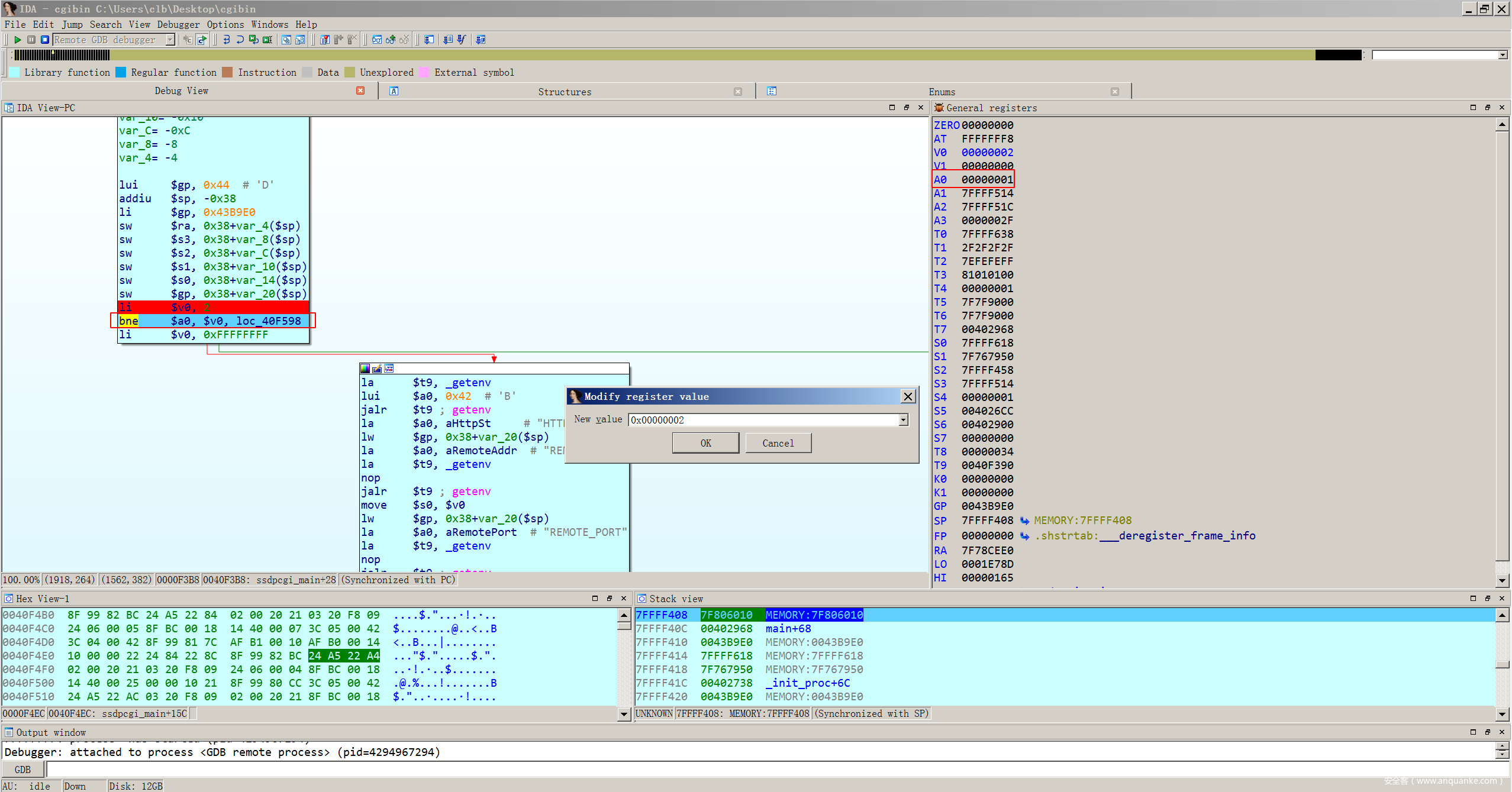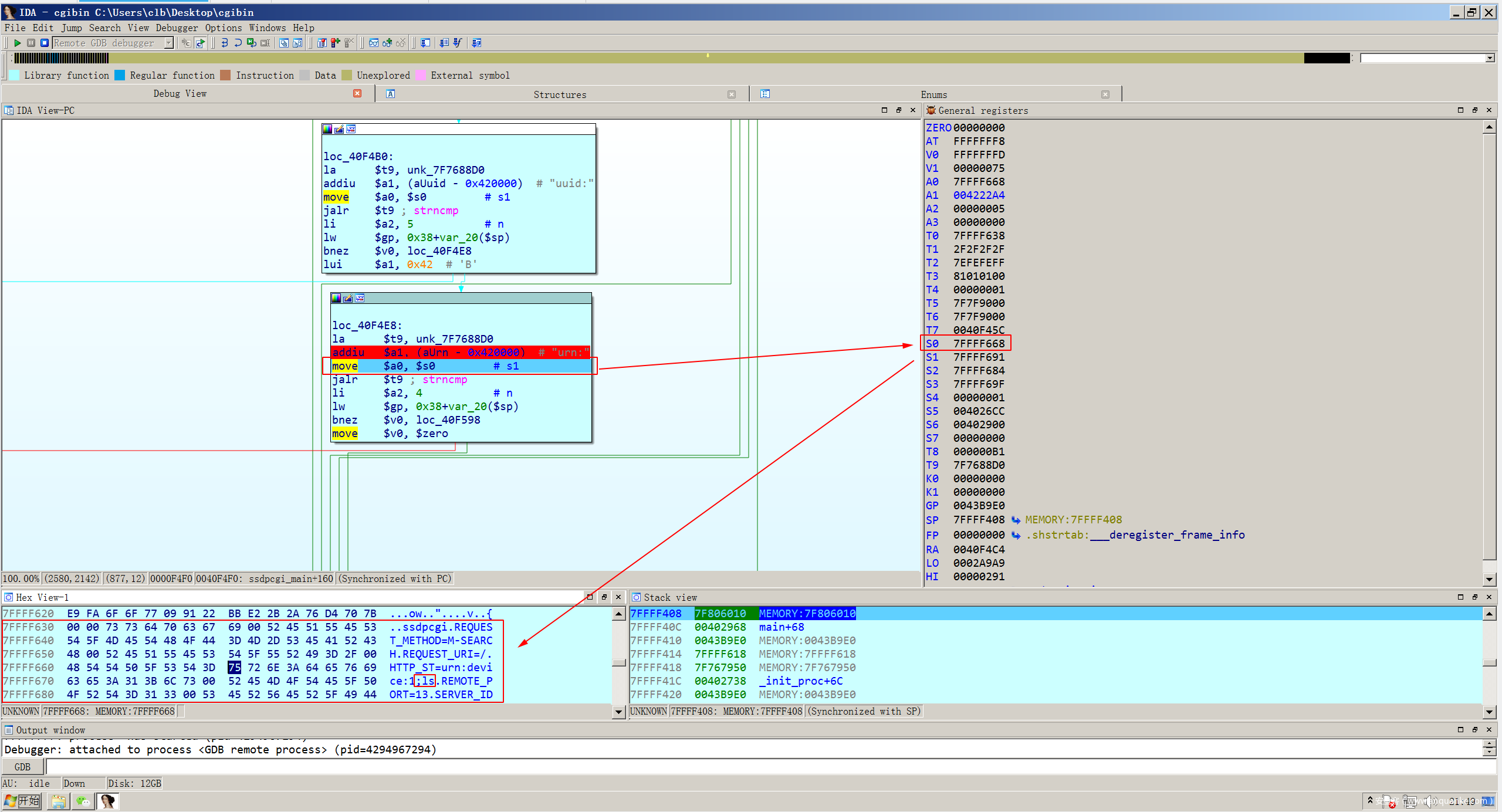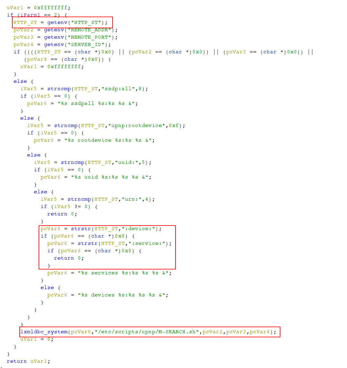 远程命令执行漏洞发生在cgibin可执行文件中的ssdpcgi_main()函数中,即使这个函数之前已经打过补丁,但是而由于环境变量未正确过滤而造成远程命令执行.