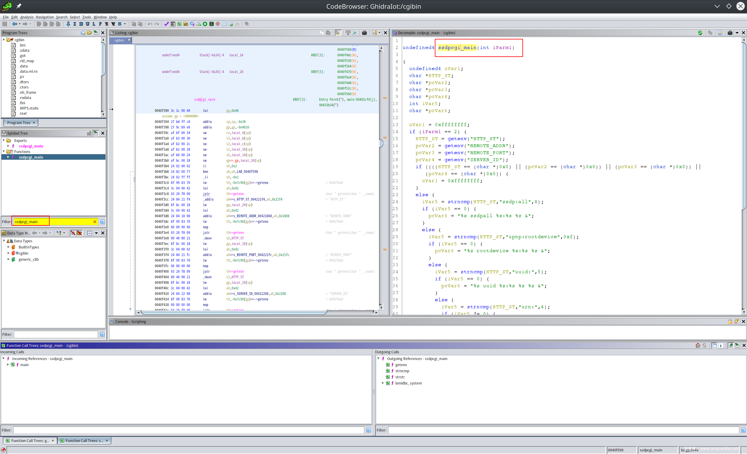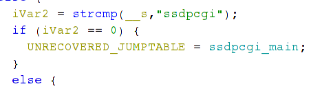 通过Ghidra分析可以看出如果想要跳转到ssdpcgi_main()函数,想要匹配ssdpcgi才可以.