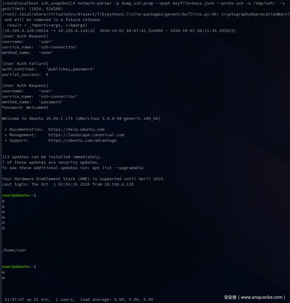 本文研究了SSH协议原理,以及OpenSSH进程如何在内存中存储话密钥,找到了一种从内存中抓取它们并在网络流量解析器中使用它们的方法,能够将SSH会话解密并还原为可读输出。文中所用脚本如下: