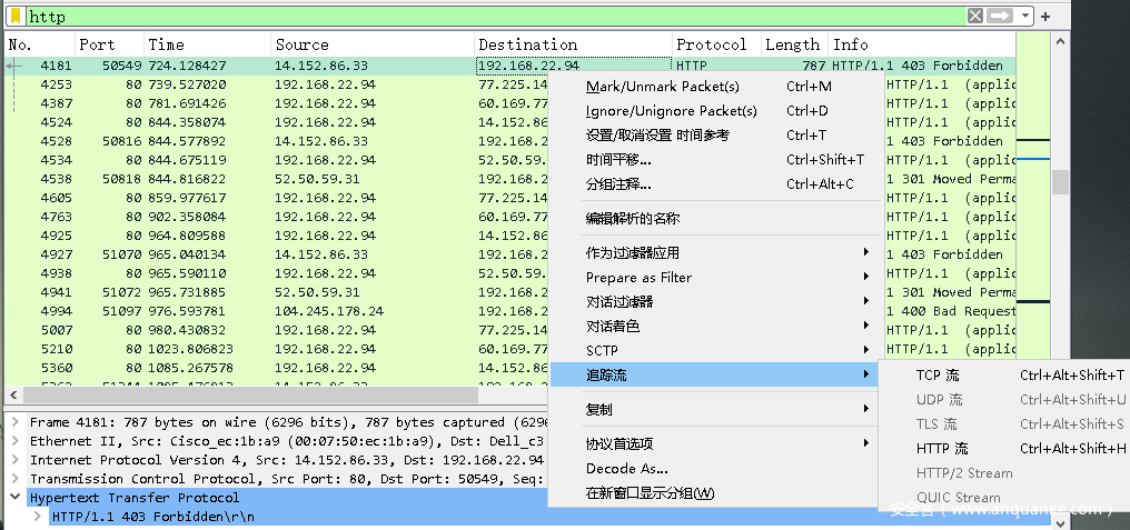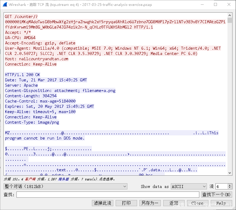 那么逐渐远离了主题——流量分析了。我们回到正题。继续看wireshark。