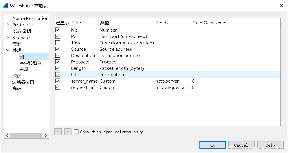 然后我就模仿这位师傅进行了列名添加服务器名和请求uri的操作。具体设置: