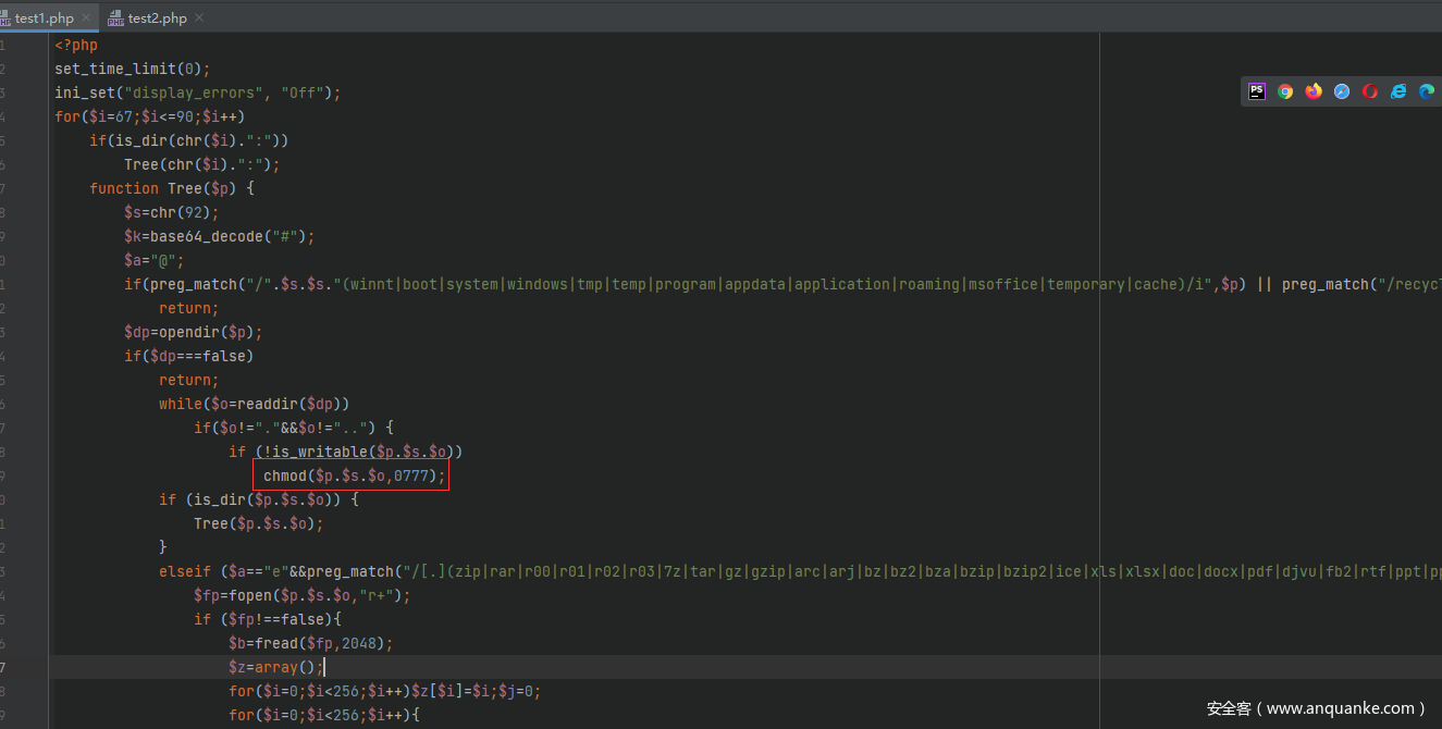 最后发现这个脚本从C://users/开始遍历了所有文件!然后进行了写文件和重命名的操作,害怕,不敢运行,以后有了win虚拟机就来运行。