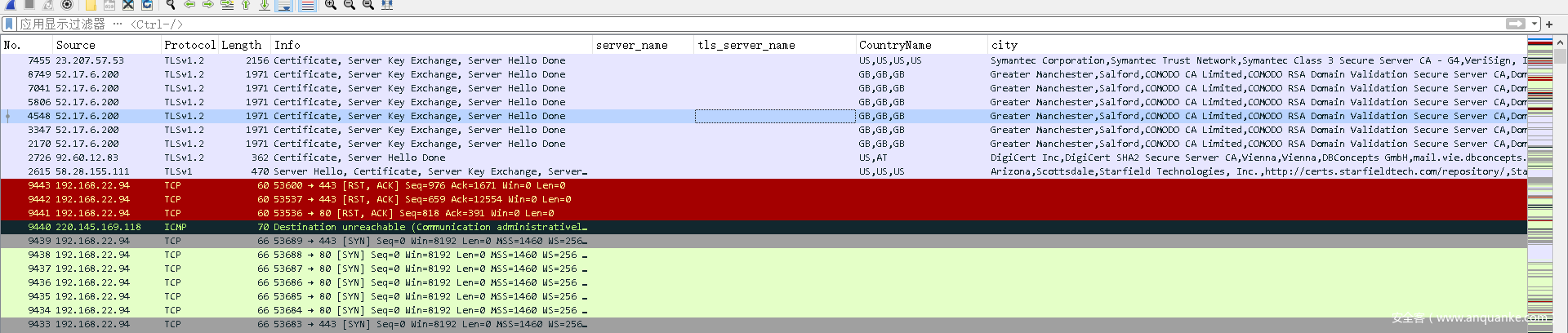 在解密后的tls数据流中,仔细观察可以看到US,Manchester等字符串。