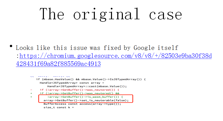 最后我们还介绍了准备在mp2o上使用的chrome bug,这个漏洞在chrome的正式版上消失了又在比赛前重新出现,最终直接报告给了google: