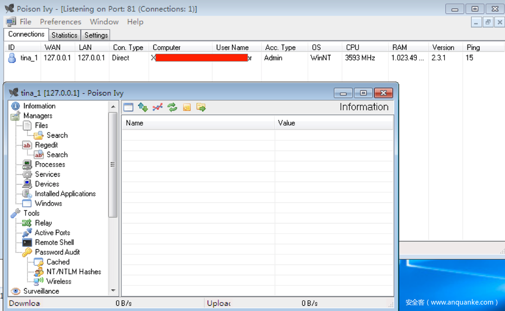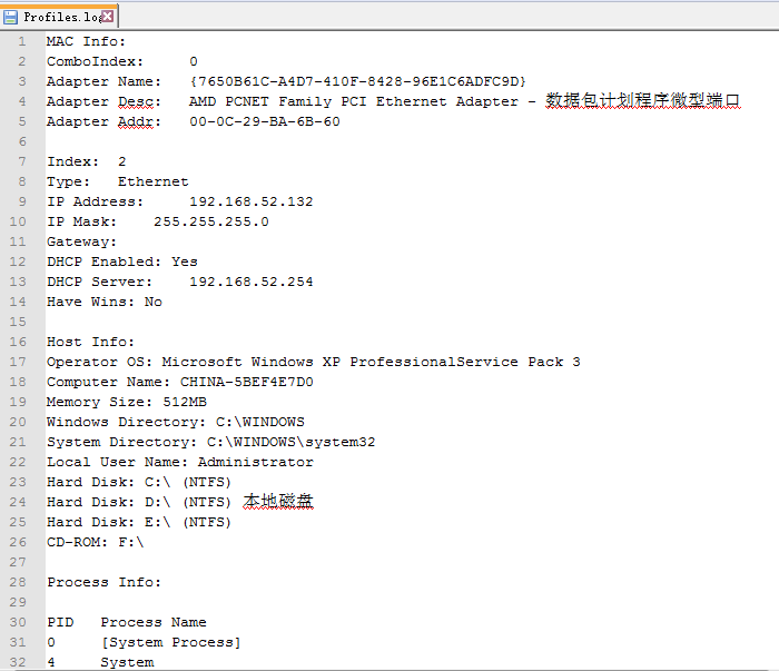 | MAC Info:MAC信息,主要包括IP地址、网关信息等 Host Info:主机信息,主要包括操作系统信息、主机名称、本地用户名等 Process Info:当前进程信息 Version Info:相关版本信息,主要包括Microsoft Office和Microsoft Internet Explorer版本信息 Disk Info:磁盘信息 |