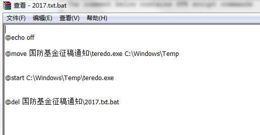 默认的批处理命令会把木马主体移动到temp目录下,然后执行起来,同时删除该批处理文件: