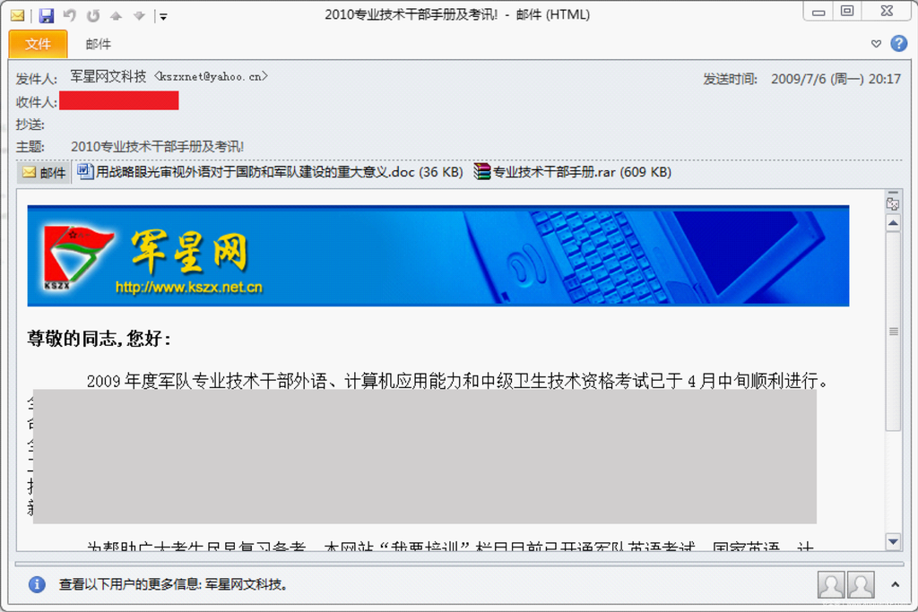 - 2009年2月,开始对军工行业展开攻击(某知名军工类期刊杂志社)
