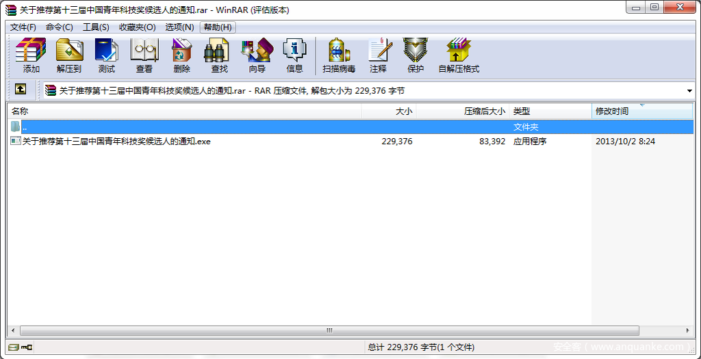 | 压缩包内PE | 8c9670fbe68ab8719077d480242e6b9e | 关于推荐第十三届中国青年科技奖候选人的通知.exe | Dropper.Win32.FakeDoc |