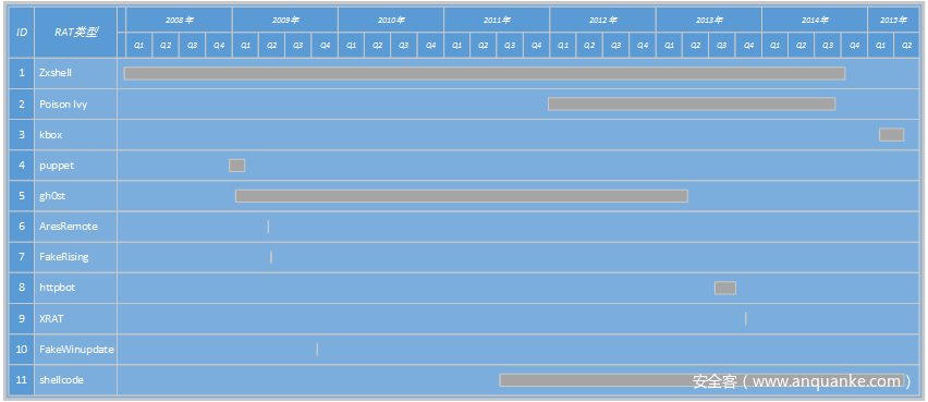| 常用RAT类型 | PI\ZXSHELL等 | 未知 | |