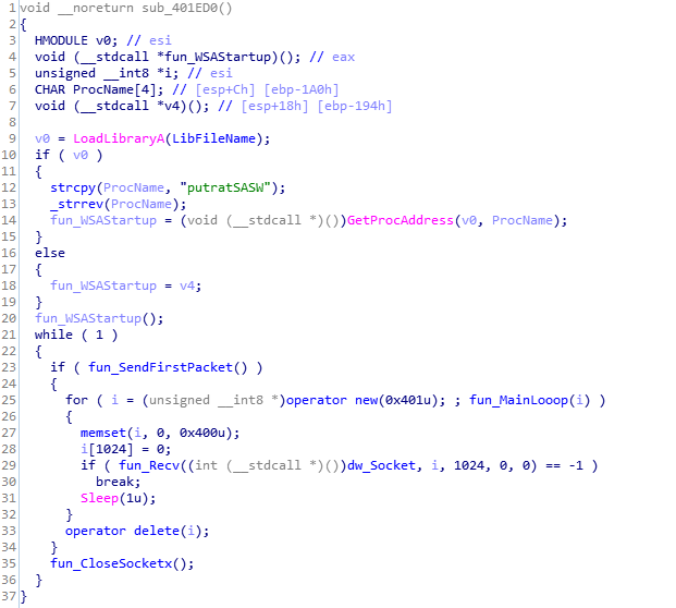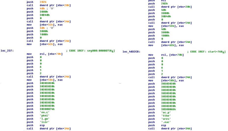 - 2009年10月,木马增加了特殊的对抗静态扫描的手法(API字符串逆序),相关手法沿用到大部分版本的木马中,并持续应用到2018年