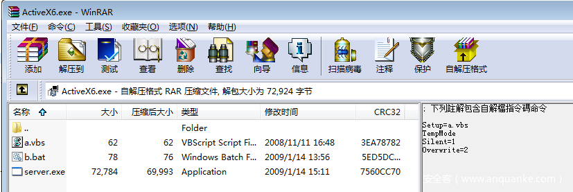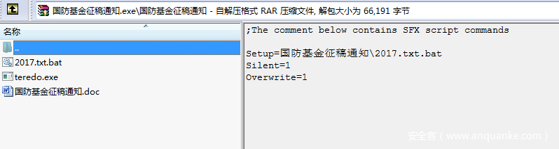 该文件实际是一个RAR自解压格式程序,参数如下,点击这个exe,会直接运行里面的bat文件:
