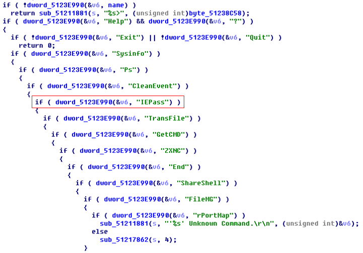 - 2012年2月,首次发现基于zxshell代码的修改版后门1,其中关键功能是窃取如.doc\.ppt\.xls\.wps类文档文件