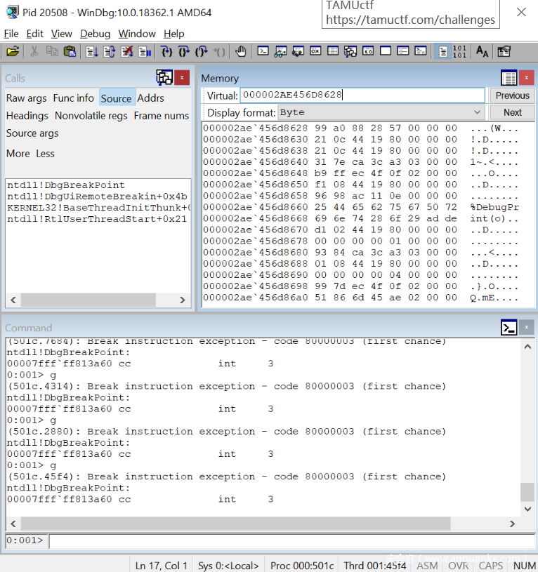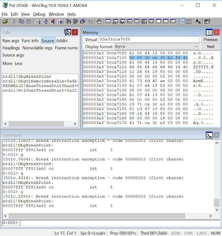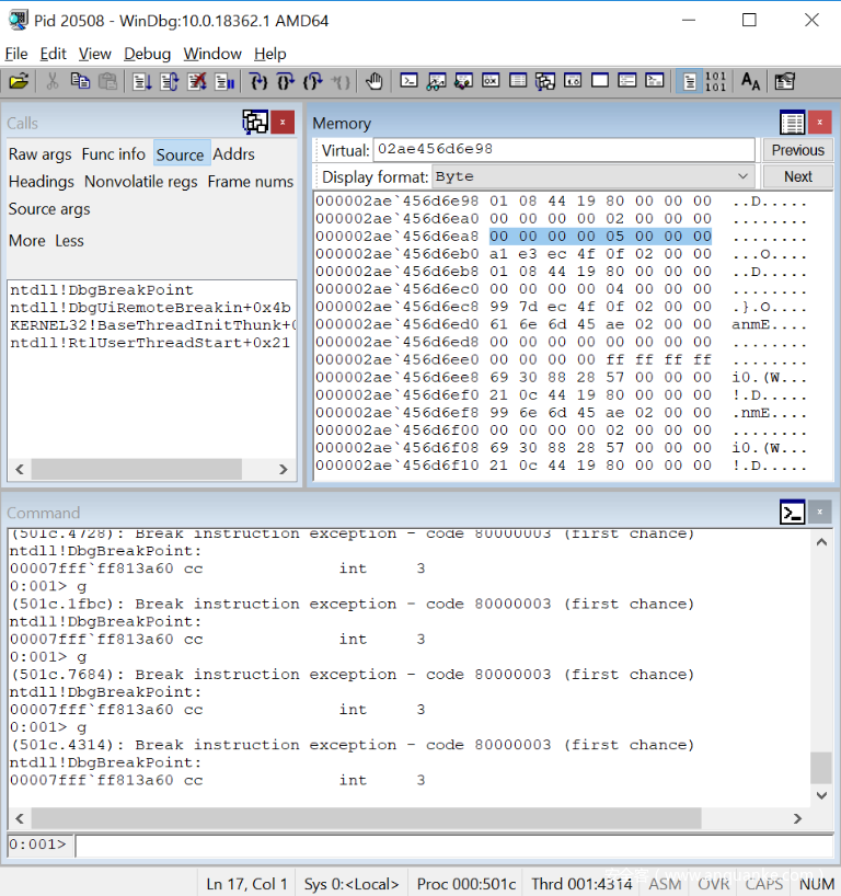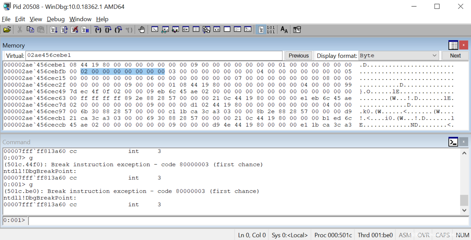 尝试在WinDbg中加载该对象的内存地址,因为现在唯一的目标是了解它在内存中的布局: