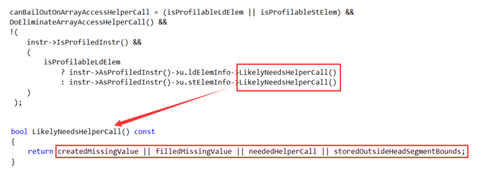 这里的注释已经说的很清楚了:从指令中提取边界检查的条件是当边界检查失败的时候JIT不是调用helper call这样的slow path处理而是直接bailout到Interpreter。这里关键变量是canBailOutOnArrayAccessHelperCall,一般情况下它由如下代码决定:
