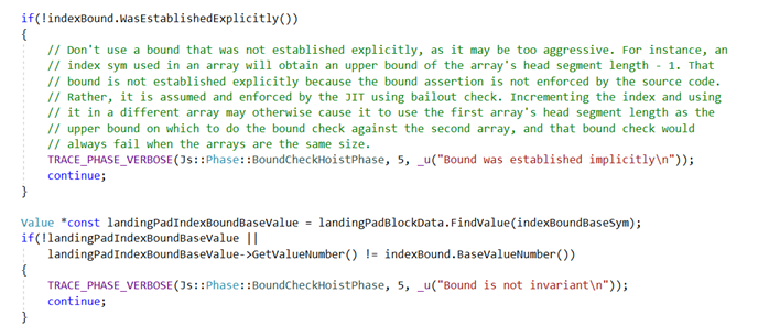 index is constant 是指数组索引为常量的情况,对于索引为常量的边界检查提升,Chakra给出了明确的注释: