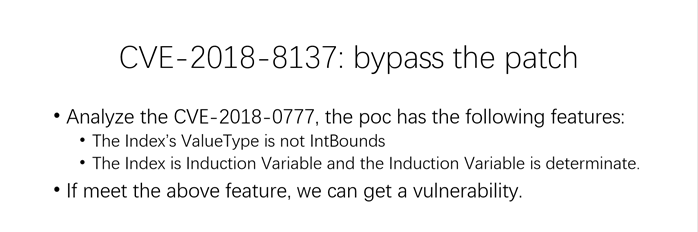 显然这种边界检查是有问题的。具体的,loopCountMinusOne = 0的情况可以参考S0rryMybad 《Story1 Mom What Is Zero Multiplied By Infinity》中介绍的case:CVE-2018-8391。loopCountMinusOneConstantValue = 0可以参考zenhumany师傅PPT第91页的case:CVE-2019-0592,不再详述。
