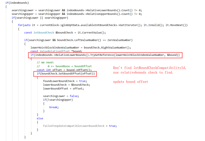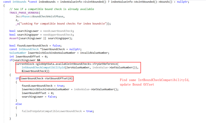 在做数组边界检查提升的时候,会检查globOptData.availableIntBoundChecks是否存在可用的边界检查,有的话则更新其Bound Offset。看这样一个例子:
