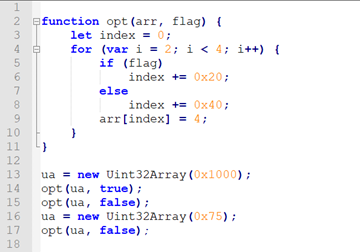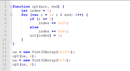 这里可以看到在StElemI_A前只有一个Lower Bound Check: 0 ≤ i,而Upper Bound Check被消除了,从而造成了OOB。这里的PoC和之前介绍的条件4中的示例程序不太一样的是这里增加了一个基本块: