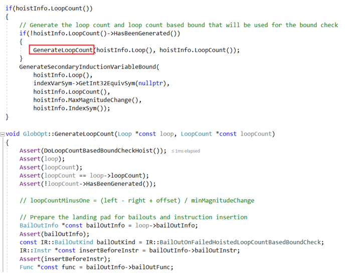 如果loopCount在MergePredBlocksValueMaps已经确认,则直接使用loopCount;否则在Bound Check Elimination阶段通过DetermineLoopCount收集的loopCount信息调用GenerateLoopCount生成: