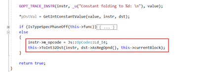 在actual optimization phase阶段,当分析到基本块:if (i === 10) { i += 0; } 会发生常量合并: