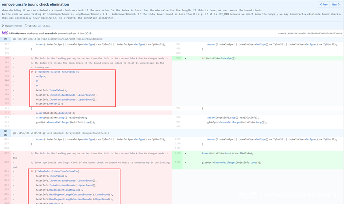 数组索引的边界检查是防止数组访问越界的有效手段。但是对数组索引的边界检查是比较耗时的,因此JIT引擎为了提高Javascript代码运行效率,对数组的边界检查在一定条件下进行了优化。Chakra中的相关代码主要在GlobOpt::OptArraySrc函数中,涉及的优化主要包括Bound Check Elimination和Bound Check Hoist。因为这部分代码逻辑比较复杂,笔者水平有限,分析过程难免有疏漏,文中错误之处恳请斧正。