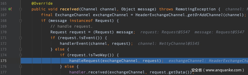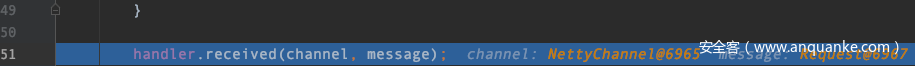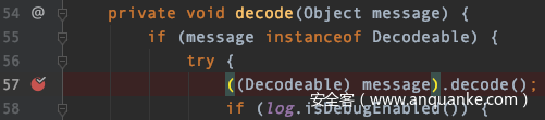 我们将断点打在 org.apache.dubbo.remoting.transport.DecodeHandler 的第57行代码上。