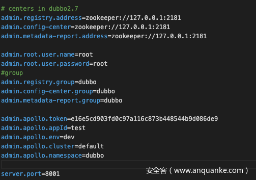 下载完成后进入/dubbo-admin-server/src/main/resources目录修改application.properties配置文件,将其中的注册中心地址修改为自己启动的注册中心的地址