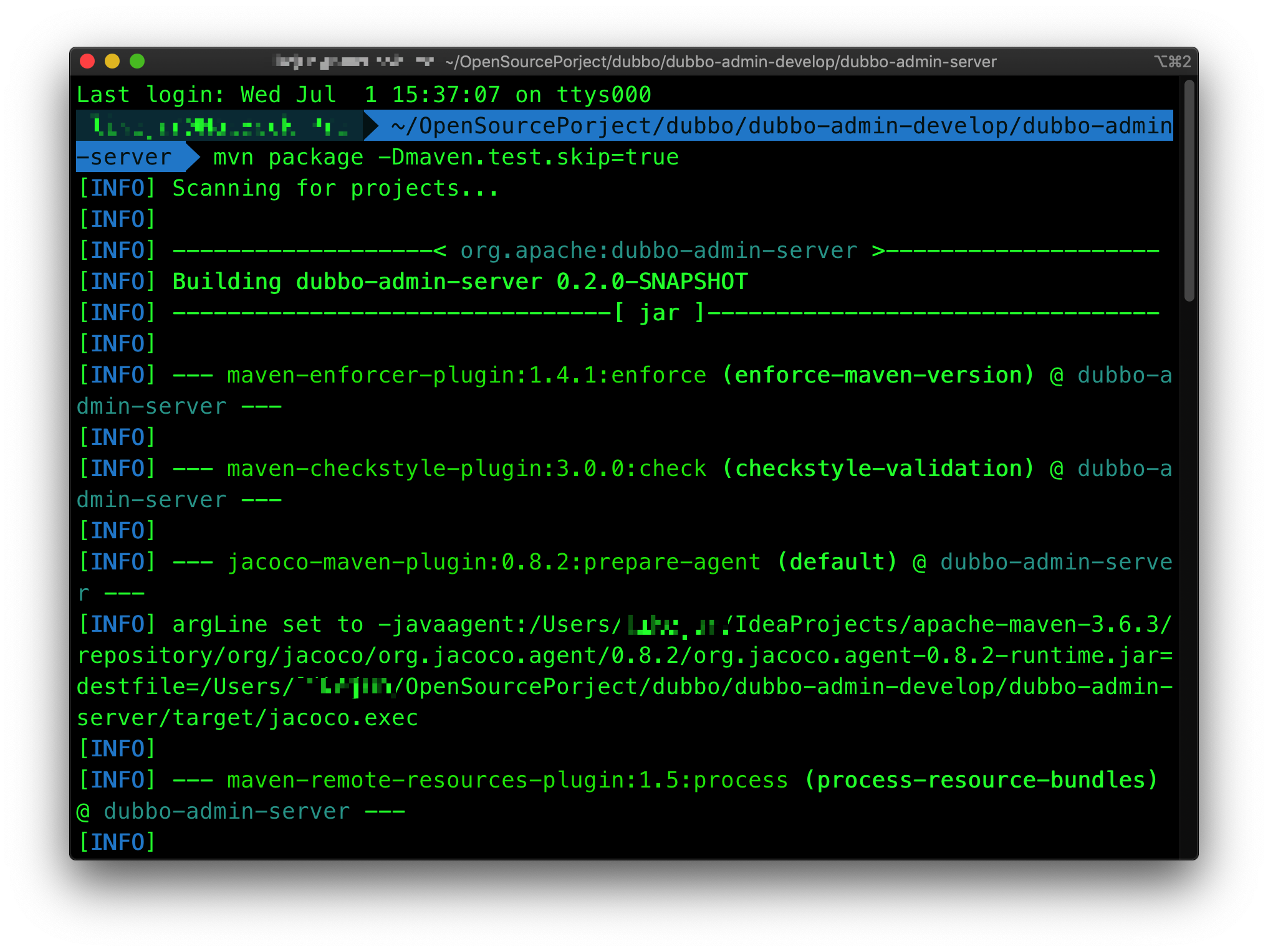 dubbo-admin-server 目录下运行 mvn package -Dmaven.test.skip=true 将该模块打包成jar包