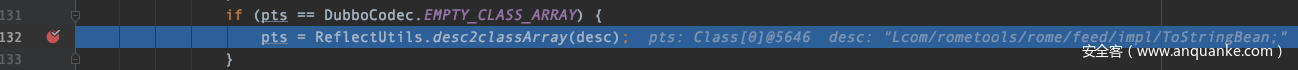 跟进该方法,在第131行代码处有一个if判断,这里通过RefctUtils.desc2classArray()处理完desc参数然后返回一个ToStringBean的类对象。