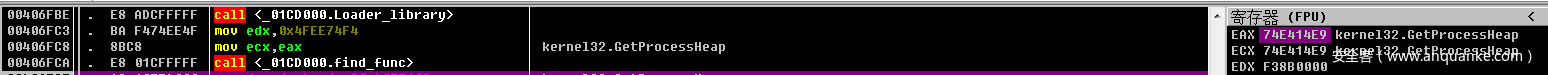 这个函数内部的功能就是加载dll的函数 4FEE74F4h对应的就是GetPorcessHeap