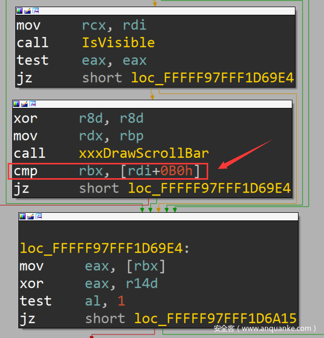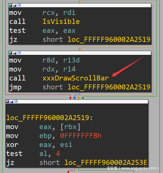 让我们先来直观感受一下补丁前后的对比,这里我们直接定位问题函数xxxDrawScrollBar