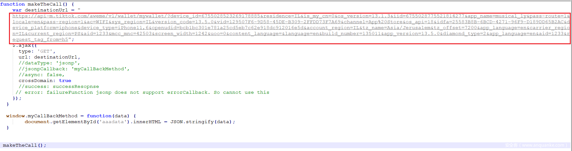 我们发现TikTok实现了一个非常规的JSONP回调,提供了从API服务器请求数据的方法,并且没有CORS及SOP限制!