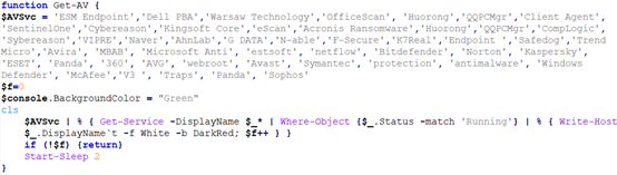 所有文件释放完毕后,takeaway.ps1脚本会被首先执行。该脚本会获取反病毒软件信息并在终端进行展示。