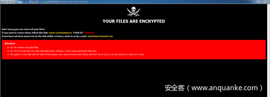 winhost.exe将在每个被加密目录下创建一个勒索信息文件FILES ENCRYPTED.txt。另外还将在启动目录下创建文件info.hta,系统启动时将执行该文件以提醒用户,用户ID即为系统盘的序列号。