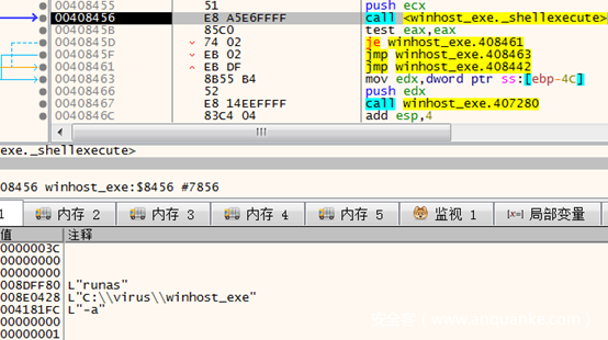如果当前执行权限非管理员,winhost.exe则以管理员权限重新运行自身,以求获得更大的权限、加密更多的文件。