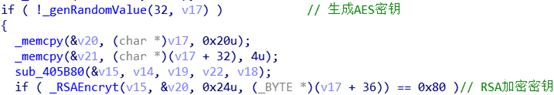 总体而言,该病毒的加密功能从核心算法上较之前的版本并没有实质性的变化。使用这种已被广泛应用的成熟加密方案,最大的作用在于以目前的计算机算力几乎无法实现对被加密文件的技术破解。也就大大提升了病毒通过加密勒索钱财的成功率。