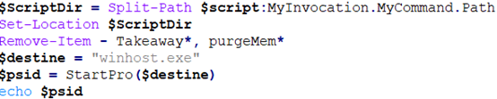 接着删除两个脚本Takeaway.ps1和purgeMemory.ps1,再执行加密模块winhost.exe。