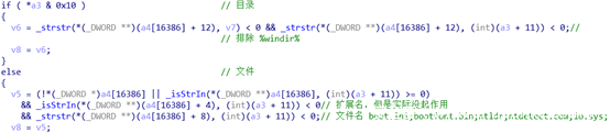 搜索时跳过目录%WINDIR%以及后缀为.HCK的加密文件,并避过以下文件名: