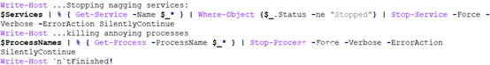 - purgeMemory.ps1:删除备份数据、日志、停止服务及进程等