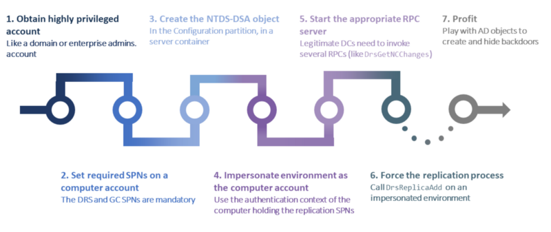 为了将新的服务器注入复制拓扑中,DCShadow背后的研究人员做了许多工作,其中最关键的就是成功识别出完成该任务所需的最少改动,这样就可以滥用这一过程,悄悄实现恶意信息的注入。
