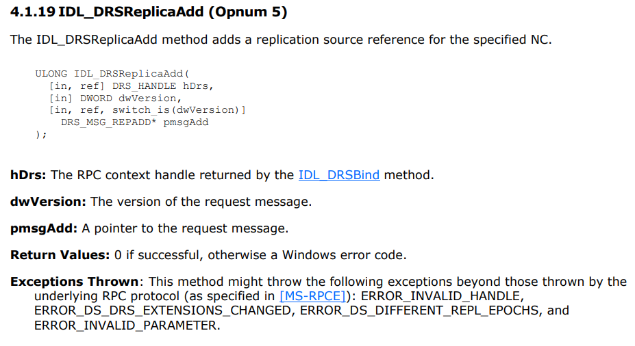 图11. MS-DRSR规范中有关DRSReplicaAdd IDL的描述